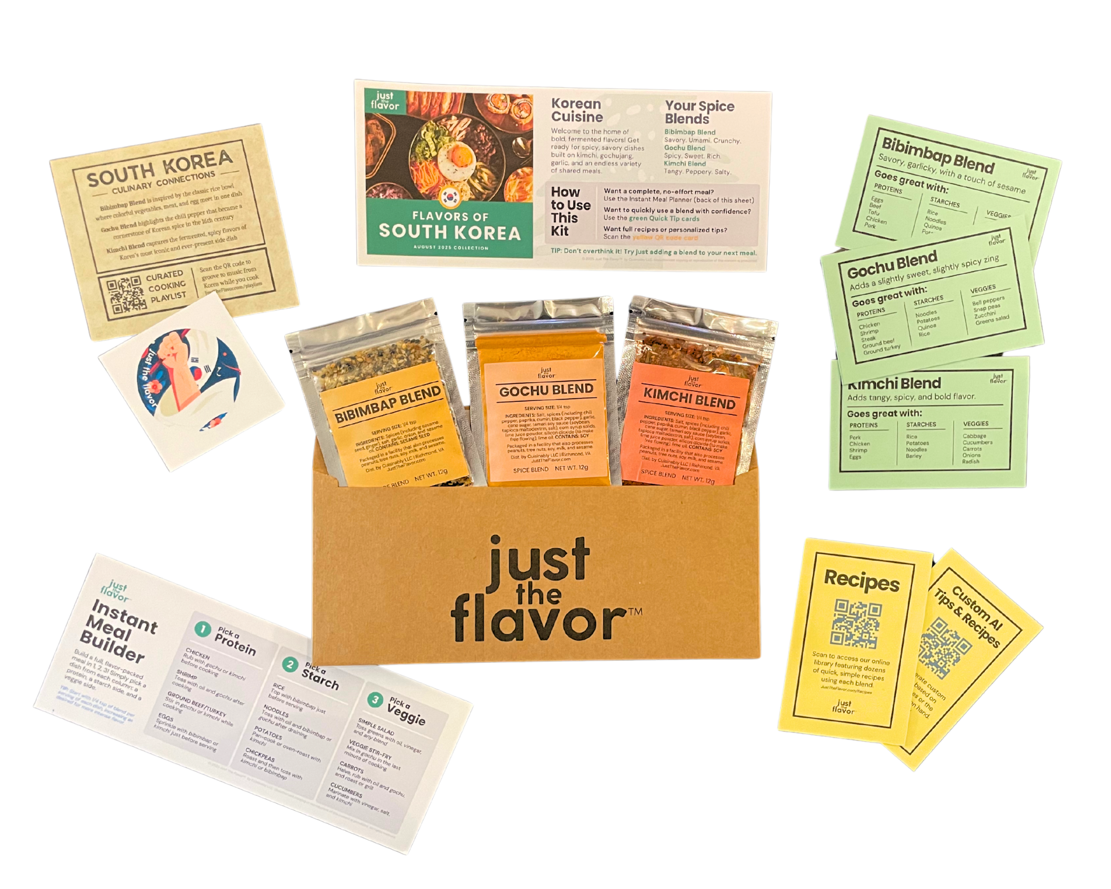 We’re like meal kits, but for the base ingredients (protein, veggies, starches) you already have. We stripped meal kits down to Just The Flavor™: unique spice blends that turn ordinary groceries into extraordinary dishes — plus easy recipes, tools, and tips.
